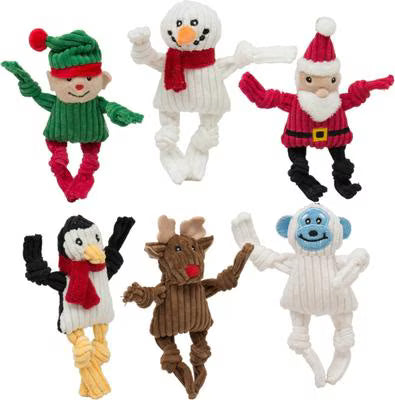 Bring holiday cheer and pint-sized fun to your dog’s playtime with the HuggleHounds Santa’s Workshop Wee Huggles® series. Each character is sold individually and designed for smaller pups, featuring a squeaker and floppy knotted limbs for extra engagement.