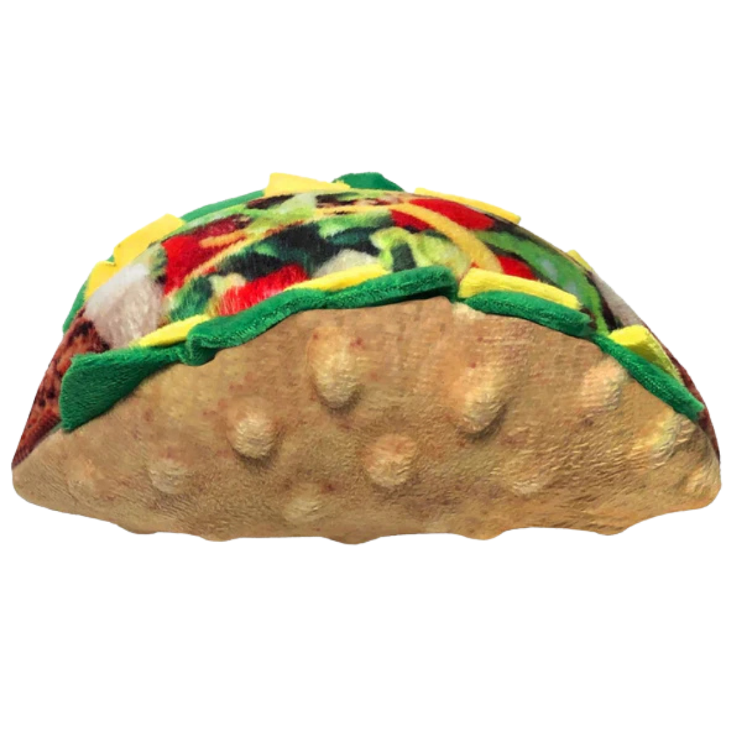 - Whimsical taco-inspired design adds playful flair to your dog’s toy rotation